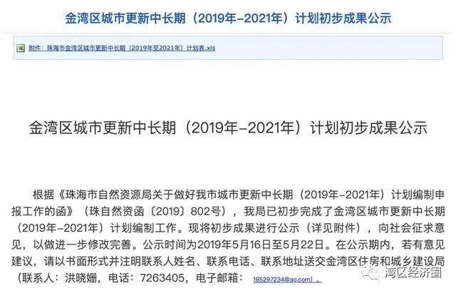 《金湾区城市更新中长期(2019年-2021年)