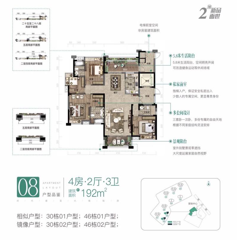 √ 5.8米生活陽臺 √私家前室 √ 多套間設計 √ 景觀陽臺